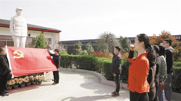 在姜鴻起烈士雕像前,本報“紅色記憶”欄目組舉行了黨員宣誓儀式(如圖),并向姜鴻起烈士雕像敬獻了花籃,寄托哀思。接下來,周口報業傳媒集團將通過多個平臺發表文字、視頻專題,傳承弘揚烈士精神,敬請關注。②7