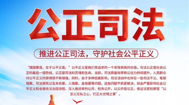 “理國(guó)要道,在于公平正直?!惫秸x是我們黨追求的一個(gè)非常崇高的價(jià)值,司法公正是社會(huì)公正的最后一道防線,公正是司法的靈魂和生命。