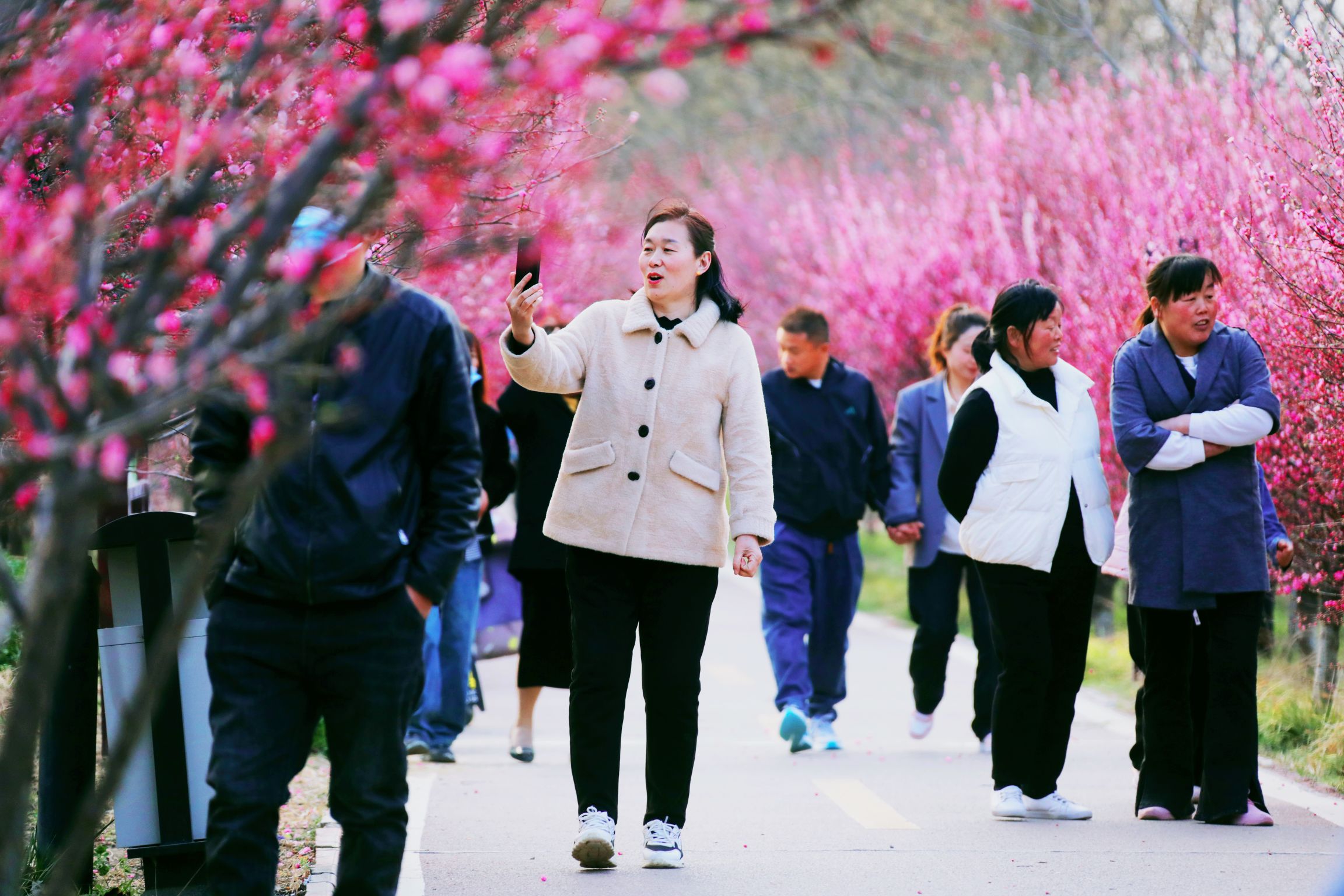 連日來,長達(dá)十里的桃花長廊,每天吸引著眾多市民前來踏青賞花、拍照留念。人們在賞花的同時,陶冶了心情,鍛煉了身體,收獲了愉悅。①2