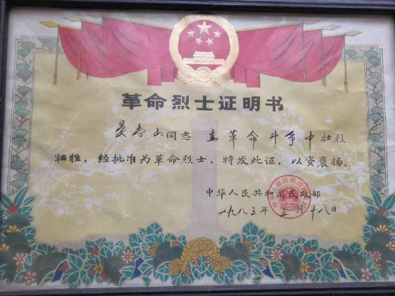 黃德耀的小爺爺黃成香于1935年3月在哥哥黃本富犧牲后的第2個(gè)月參加紅軍。1940年,黃成香在安徽省定遠(yuǎn)縣對(duì)日軍戰(zhàn)斗中英勇犧牲,尸骨無存,年僅17歲。