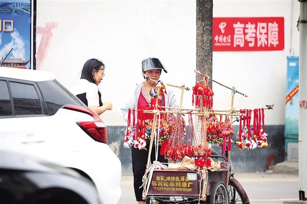 6月5日,一名婦女正在淮陽城區街頭銷售香囊。端午節將至,香囊成了街頭巷尾的一道亮麗風景。香囊里填充有艾葉、丁香、白芷等中草藥,散發出淡淡的清香,不僅能驅蚊蟲、避瘟疫,還寓意著祈福納祥、健康平安。 ...[詳細]
