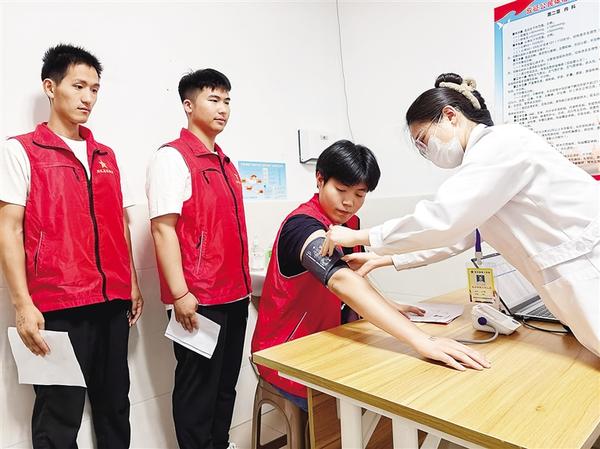 體檢現(xiàn)場,應征青年統(tǒng)一穿著紅馬甲,手持體檢指引單、廉潔征兵公開信,排著整齊的隊伍,逐個科室參加體檢。醫(yī)生現(xiàn)場檢查、現(xiàn)場告知結(jié)論、現(xiàn)場簽字確認、現(xiàn)場錄入體檢結(jié)果,在體檢結(jié)束后發(fā)放體檢結(jié)論告知書。