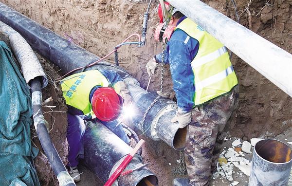 10月23日,在我市集中供熱工程文昌中學節點工程,工人在焊接管道。該節點工程建成后將為周口職業技術學院(文昌校區)和周口市文昌中學兩校師生提供溫暖過冬環境,優化教學條件,提升學校品質。