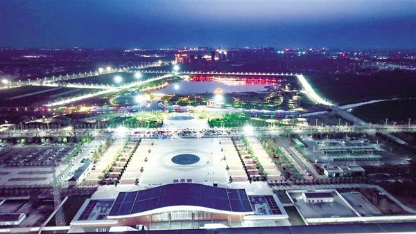 華燈初上,西華高鐵站夜景如畫。站前廣場布局規(guī)整,彩色鋪裝、圓形圖案兼具美觀與實(shí)用性,優(yōu)化人流集散。