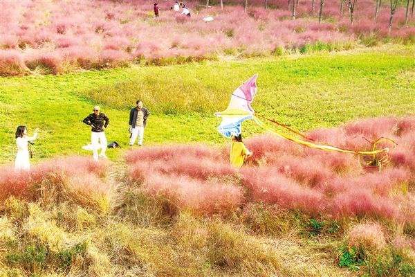 11月4日,市民在粉黛亂子草盛開的中心城區濱河公園南岸玩耍。