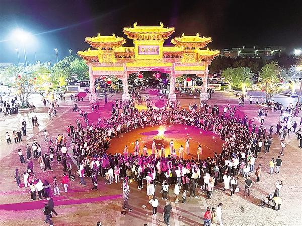 近日,游客在周口建業運河古鎮篝火晚會歡聚。近期,這里天天都會有盛大的篝火晚會。