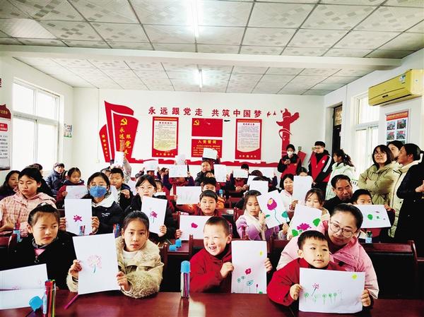 2月11日,項城市婦聯走進光武街道金蟾社區開展繪“廉”倡家風、歡喜鬧元宵主題活動,讓廉潔的清風浸潤心靈。圖為參加活動的孩子們展示繪制的“廉”畫。