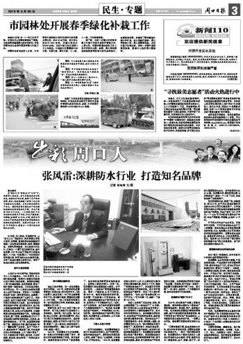 目前,張風雷領軍的企業集團正籌備擴建新的廠房、引進新的先進生產線,向生產高科技含量的新型環保卷材進軍。他誓言用未來5年或10年的努力,打造出一個由河南人主營的國內防水材料知名品牌。