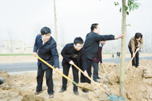 在西里莊植樹點,來自全區部分單位的黨員干部與當地群眾一起揮锨、挖坑、栽樹,現場一派繁忙景象。正在植樹的區政協干部王新良說:“參加植樹造林活動可增強機關干部職工的環保意識,從而帶動廣大群眾積極加入到植樹護綠的行動中,做到綠化家園、全民參與。”