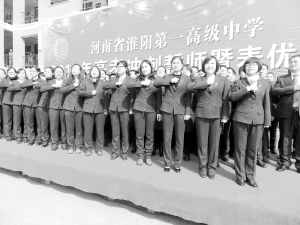 3月21日,淮陽一高舉行 “高考百日沖刺”誓師大會。校長王業(yè)生及高一、高二、高三年級全體師生參加了會議。青年教師代表付士翔、家長代表張鳳啟及學(xué)生代表分別進(jìn)行了充滿激情的發(fā)言。在距2015年高考還有100天的日子里,師生莊嚴(yán)宣誓:“以頑強的意志、百倍的激情、無窮的潛力,以最刻苦的精神、最堅韌的毅力,全力以赴,奮勇爭先,爭分奪秒,苦戰(zhàn)百日,決戰(zhàn)高考,誓創(chuàng)輝煌。”(豆紀(jì)鋒 攝)