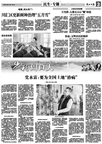 作為一名市人大代表,在今年周口市“兩會”上,黨永富還建議,市人大要監督農業部門采取切實有效措施,盡快推廣有突出效果的肥料促進劑肥料減量技術,并加大宣傳和推廣的力度。多施肥多打糧食的時代已經過去,只有耕地不受污染才能多打糧食,才能可持續生產糧食。要把肥料促進劑肥料減量技術推廣應用工作納入政府重要議事日程,同時還應把它作為一項環保政策,納入《周口市耕地質量提升規劃》之中,并列入政府的財政預算。