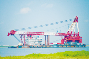 中鐵大橋局千噸起重船抵達(dá)孟加拉國 這是5月20日在孟加拉國帕德瑪大橋項目施工區(qū)域拍攝的中鐵大橋局千噸起重船。經(jīng)歷一個多月的海上航行,從青島起航的中鐵大橋局“瑞航05”起重船于5月19日抵達(dá)孟加拉國帕德瑪大橋施工區(qū),為大橋建設(shè)提供重要保障。新華社發(fā)