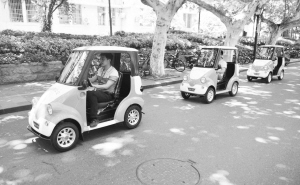 校園微公交現(xiàn)身浙江大學 5月21日,校園微公交行駛在浙江大學校園。近日,由浙江大學ESE工程中心研發(fā)的校園微公交開始在浙大校園投入試運行。這款校園微公交車采用鋰電池供電,最高時速25公里,在滿電情況下可行駛100公里。新華社發(fā)