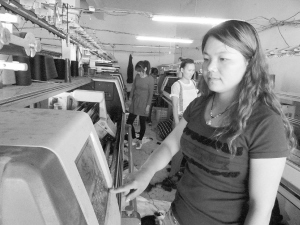 5月24日,商水縣巴村鎮上城村返鄉農民工黨強嗆和工人一起操作電子編織機。黨強嗆返鄉后創建了毛織廠,吸收村里30多位村民進廠工作。近兩年來,該縣通過實施“回歸工程”,使3000多名“金鳳凰”歸巢興業,并為6萬名多農村剩余勞力提供了就業崗位。(喬連軍 攝)