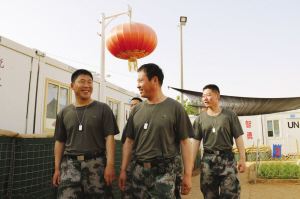 中國維和部隊首次配備單兵“身份識別牌”    5月26日,在馬里加奧維和任務區,佩戴著“身份識別牌”的中國維和部隊成員值勤歸來。與以往不同的是,新一批維和官兵胸前,都佩戴著一個用中、英、法三種文字標記姓名、血型、籍貫和編號信息的“身份識別牌”。這是中國維和部隊根據執行維和任務需求,首次為官兵配備單兵“身份識別牌”。 新華社發