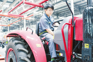 近年來,扶溝縣圍繞產業集聚區功能集合構建,著力推進要素平臺建設,全面提升產業集聚區配套功能和承載承接能力,實現了機械制造產業集群的快速壯大和健康發展。圖為該縣一機械有限公司員工正在生產線上調試輪式拖拉機。(盧付昌 攝)
