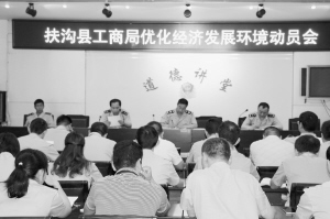 近日,扶溝縣工商局召開優(yōu)化經濟發(fā)展環(huán)境動員會,要求全系統(tǒng)工作人員立足工商職能,多措并舉優(yōu)化經濟發(fā)展環(huán)境,為全縣經濟發(fā)展注入正能量。盧付昌 攝