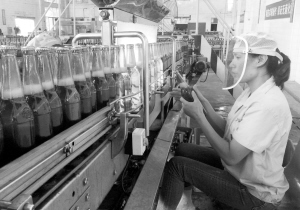 鄲城縣在加快推進項目建設的同時,引導企業加大科技投入力度,嚴把產品質量關。圖為金星啤酒有限公司一質檢員正在嚴格檢查產品質量。記者 盧好亮 通訊員 王朝先 攝
