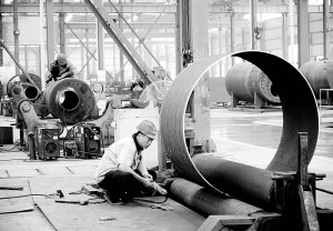 近年來,太康縣裝備制造園區被省工業和信息化廳評為特色裝備(工業鍋爐)制造園區,成為中部地區最大的鍋爐壓力容器生產基地。全縣現有鍋爐壓力容器制造企業14家,其中A級鍋爐企業5家,年生產能力2.65萬蒸噸以上。圖為該縣四通鍋爐廠生產車間一角。(記者 沈湛 攝)