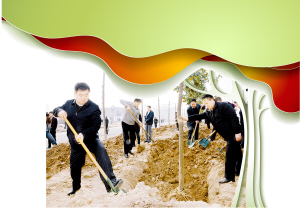 市委書記徐光等市領導在川匯區義務植樹。記者 王映攝